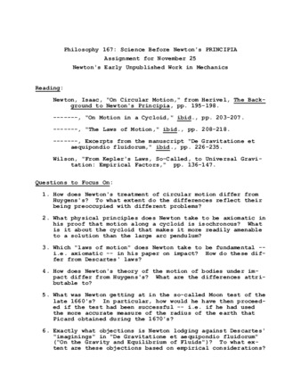 Assignment for November 25 Newton's Early Unpublished Work in Mechanics.