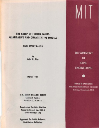 The creep of frozen sands : qualitative and quantitative models : final report. Part II / by John M. Ting.