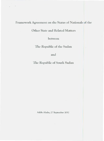 Framework Agreement on the Nationals of the Other State and Related Matters between the Government of the Republic of the Sudan and the Government of South Sudan