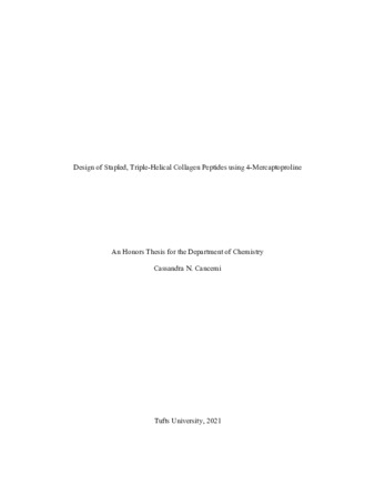 In this work, we report a small panel of rationally designed collagen peptides using dithiol bisalkylation of 4-mercaptoproline residues incorporated into triple-helical sequences. We also present the computational analysis of these peptides alongside preliminary structural data.