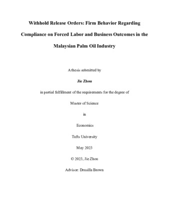 Withhold Release Orders: Firm Behavior Regarding Compliance on Forced Labor and Business Outcomes in the Malaysian Palm Oil Industry