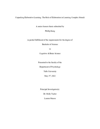 Unpacking Elaborative Learning: The Role of Elaboration in Learning Complex Stimuli