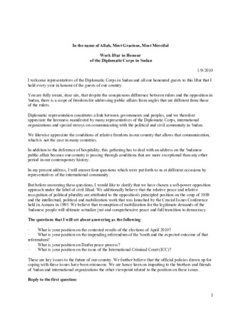 Work Iftar in Honour of the Diplomatic Corps in Sudan