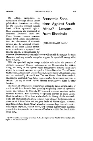 Economic Sanctions Against South Africa? _ Lessons from Rhodesia