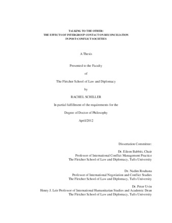 effects of facilitated intergroup contact in a post-conflict ... read moresociety. In Aceh, Indonesia,