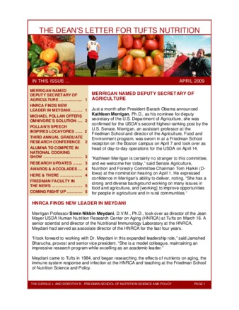 Dean's Letter for Tufts Nutrition, April