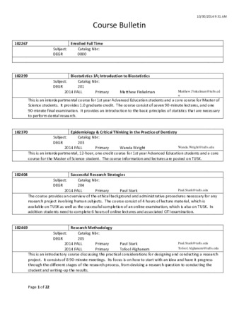 Fall 2014 course bulletin for Dental Advanced Education