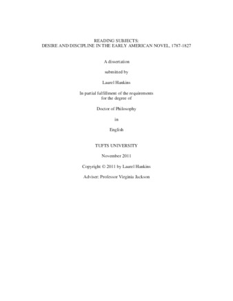 Reading Subjects: Desire and Discipline in the Early American Novel, 1787-1827.