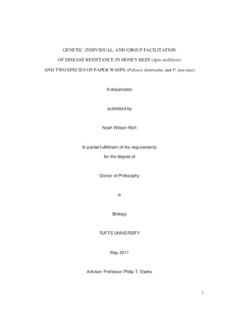 Genetic, individual, and group facilitation of disease resistance in honey bees (Apis mellifera) and two species of paper wasps (Polistes dominulus and P. fuscatus).