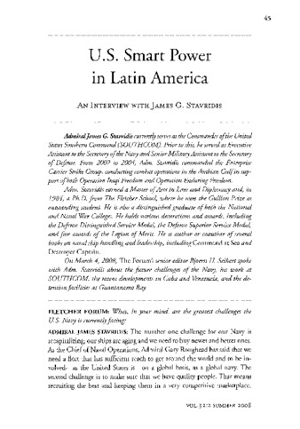 The U.S. Navy faces changing military needs, new tactics in warfare, and shifting relationships between the United States and other countries. The Forum spoke with Admiral James G. Stavridis about humanitarian service groups, U.S. military efforts in Latin America, and qualities for leadership in the coming century.