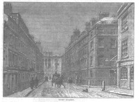 , a short thoroughfare extending from the north side of to , was the street in London paved for foot-passengers. Strype, in his edition of Stow, describes it as but, he adds, On the eastern side of this street stood, till the present year, , a dull and poorlooking chapel-of-ease to the parish church. It was formerly occupied by Josiah Wedgwood, as a show-room for his pottery and porcelain from Etruria, in Staffordshire. In previous time this had been the residence of the Spanish ambassador, the chapel being used as a Roman Catholic place of worship under the ambassador's wing. It was subsequently used by Dissenting congregations, and from down to the time of its demolition it was the scene of the ministrations of the Rev. Stopford Brooke. | |