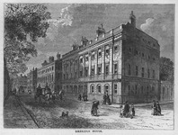 On the north side of , occupying the space between Savile Row and , stands a handsome building used as the western branch of the , and known as Uxbridge House. It was built by Vardy, assisted by Joseph Bonomi, for the Earl of Uxbridge, the father of Field-Marshal, the Marquis of Anglesey, who lost his leg at Waterloo. It was sold by his son and successor about the year . It stands upon the site of a still earlier mansion, known as Queensberry House, which was built by Leoni for the celebrated Duke of Queensberry, the father of the already mentioned. The [extra_illustrations.4.305.2] lived for many years as an inmate of its hospitable halls, enjoying the patronage and friendship of the duke, and of his [extra_illustrations.4.305.3] , so well known to our readers as the friend of Pope, and celebrated in song as