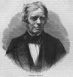 A native of , Surrey, and the son of a working smith, Michael Faraday, as a boy, was apprenticed to a bookseller and bookbinder;--and during his term of apprenticeship a few scientific works had occasionally fallen into his hands, among them being the treatise on in the and Mrs. Marcet's The perusal of the led to the construction of his electrical machine with a glass phial, and this he speedily followed up by a variety of experiments. Through the kindness of Mr. Dance, a member of the Royal Institution and a customer of his master, young Faraday was enabled to attend the last lectures delivered by Sir Humphry Davy, in the early part of . In the following year he was appointed Chemical Assistant at the Royal Institution, under Sir Humphry as Honorary Professor, and Mr. Brande as Professor of Chemistry; and shortly afterwards he went abroad, as assistant and amanuensis to his patron, Sir Humphry Davy. On his return, after an absence of years, [extra_illustrations.4.297.3] resumed his duties, and took up his residence at the Royal Institution, where he remained almost till the day of his death. In he appeared at the lecture-table in the great theatre, and he continued to [extra_illustrations.4.297.4] every year from that time. In he commenced the series of experimental researches in electricity which have been published from time to time in the of the Royal Society. In the year , when Mr. Fuller founded the chair of chemistry called after his name in the Royal Institution, he nominated Mr. Faraday the professor; and years later Professor Faraday received from Lord Melbourne's Government a pension, as a recognition of the importance of his scientific discoveries. In he was appointed scientific adviser on lights at sea to the Trinity House, and in the same year became a member of the Senate of the University of London; and he was subsequently scientific adviser on the same subject to the Board of Trade. Professor Faraday was a corresponding member of the Academy of Sciences at Paris, a fellow of the Royal Society, and a member of several learned and scientific bodies, not only in this country, but also on the Continent, and in America. The University of Oxford conferred upon him the honorary degree of Doctor of Civil Laws. Late in life he settled down in retirement at Green, where he died in the year . The in recording his death, observes that and that his great talents were